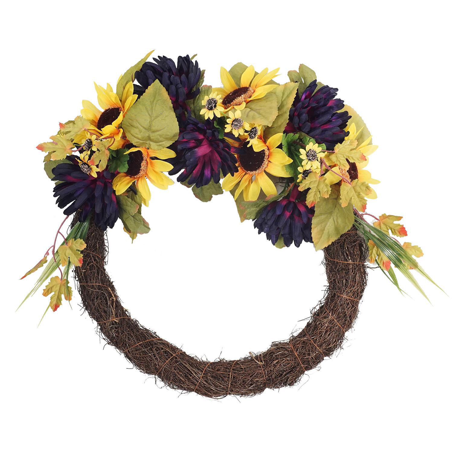 Northlight Decorative Summer Sunflower And Mum Artificial Half Flower Wreath Wayfair