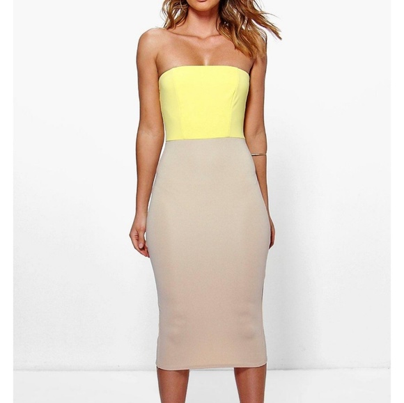 Boohoo Dresses Yellow Tan Strapless Dress New Size Poshmark