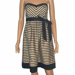 bgmaxazria Reya Dress 8 Navy Blue Tan Stripe Ruffle Strapless Mini Womens For Sale Online Ebay