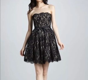 Lela Rose Black White Tan Circle Lace Overlay Strapless Dress Size 8 Cocktail Ebay
