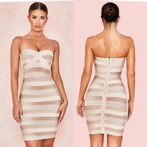 House Of Cb Light Tan Strapless Bandage Dress Uk Depop