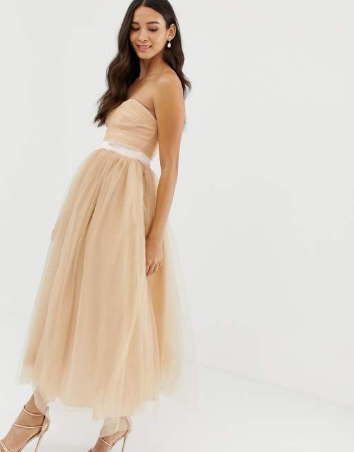 Dolly Delicious Bandeau Full Prom Midaxi Dress In Tan Asos