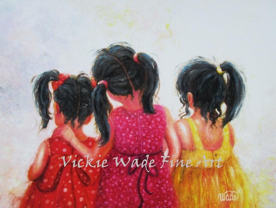 Three Sisters Art Print Three Asian Girls Three Black Haired Etsy