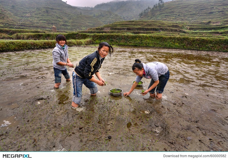 Xijiang Miao Village Guizhou Province China April 18 10 Chinese Schoolgirl Working On Flooded Farmers Field Three Asian Girls Are Busy Planting Rice Stock Photo 3106b8 3e5e 4dfe B101 Afef33e58fb6