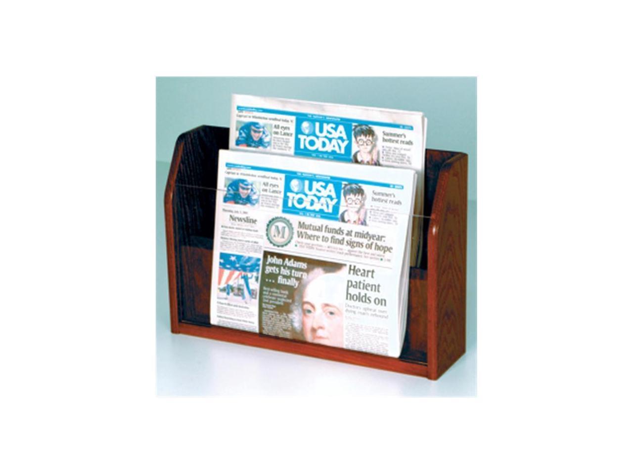Wooden Mallet Countertop 2 Pocket Newspaper Holder Display Stand Mahogany Newegg Com