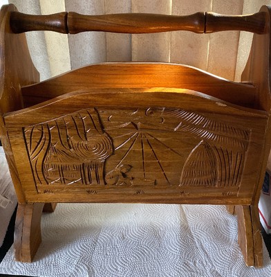 Vintage Wooden Magazine Newspaper Rack Holder Floor Stand Handcraved Chips Ebay