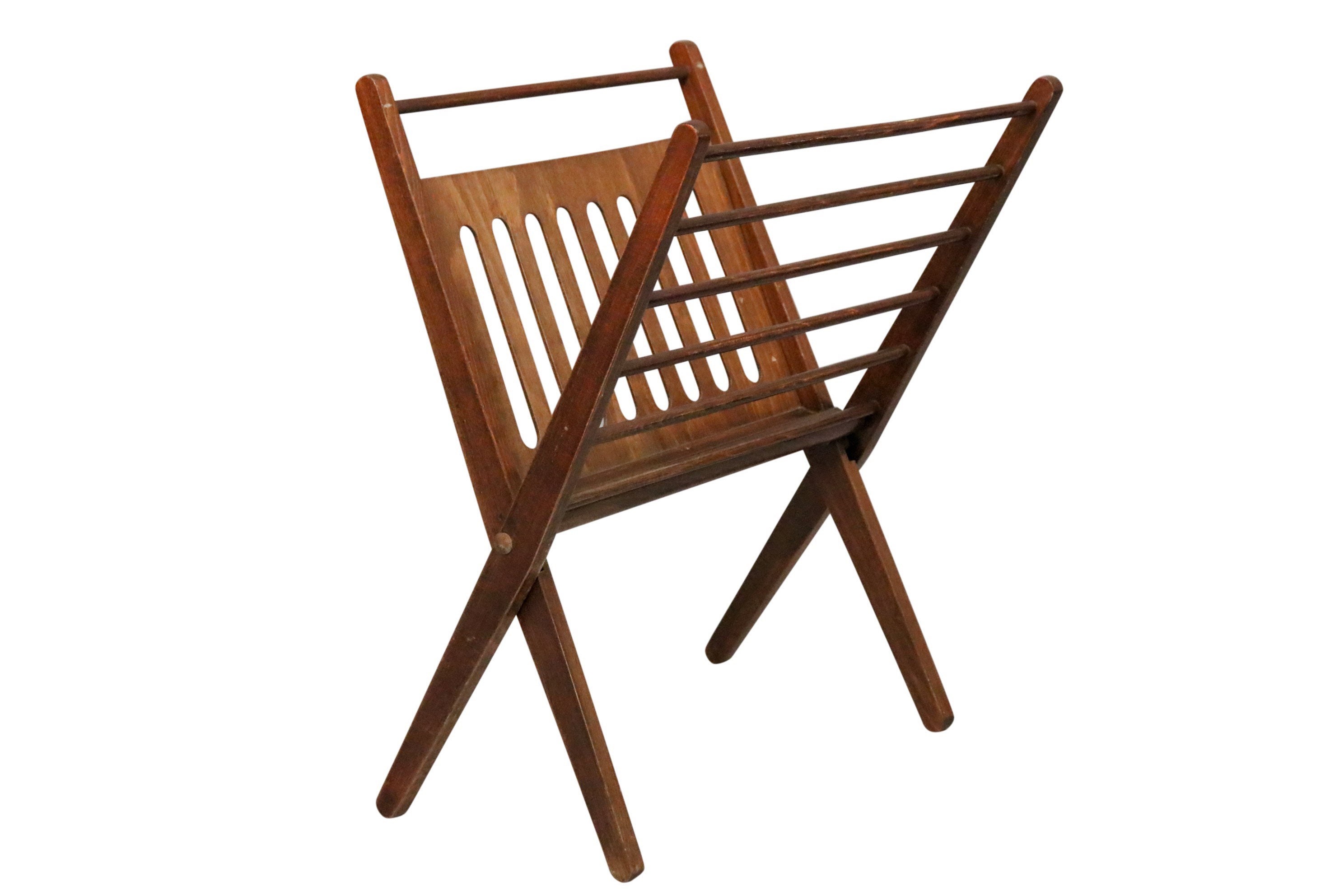 Mid Century Modern Wooden Newspaper Stand By Akiba Antiques Bidsquare