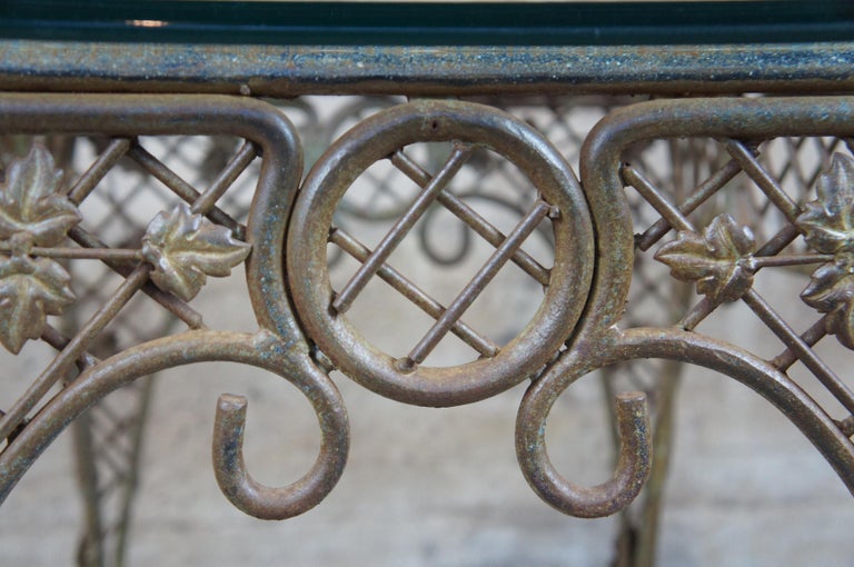 Vintage French Wrought Iron Lattice Maple Leaf Design Outdoor Side Patio Table For Sale At 1stdibs
