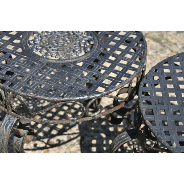 French Art Nouveau Style Wrought Iron Lattice Top Round Side Tables A Pair Chairish