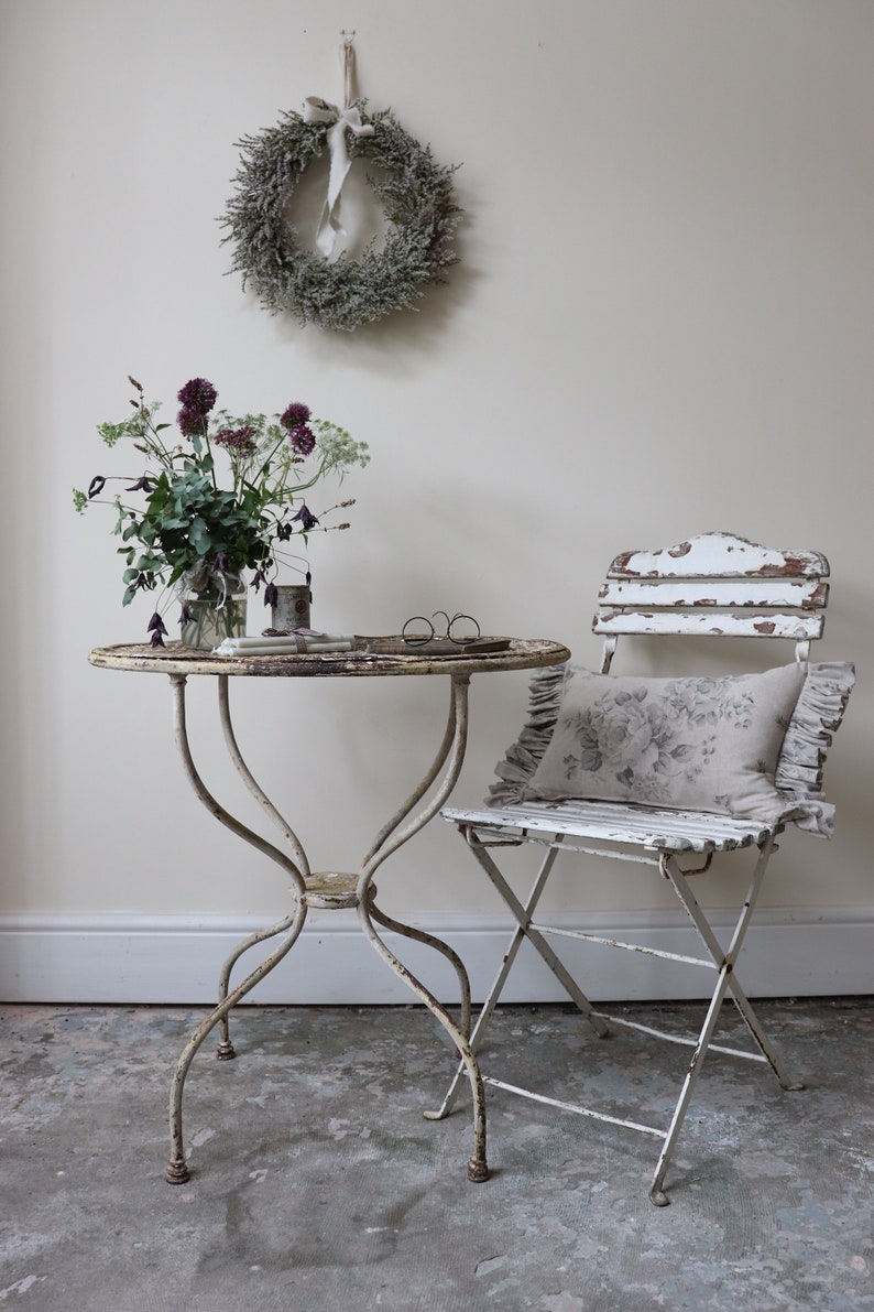 Vintage French Wrought Iron Lattice Maple Leaf Design Outdoor Side Patio Table Chairish