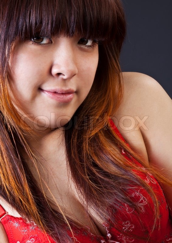 Young Cute Asian Long Hair Woman In Red Stock Image Colourbox