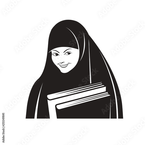 Black And White Student Muslim Girl With Hijab Vector Drawing Buy This Stock Vector And Explore Similar Vectors At Adobe Stock Adobe Stock