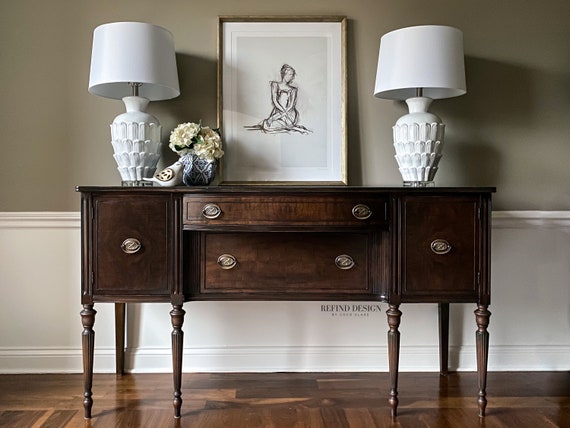 Sold Antique Burled Wood Hepplewhite Buffet Traditional Etsy