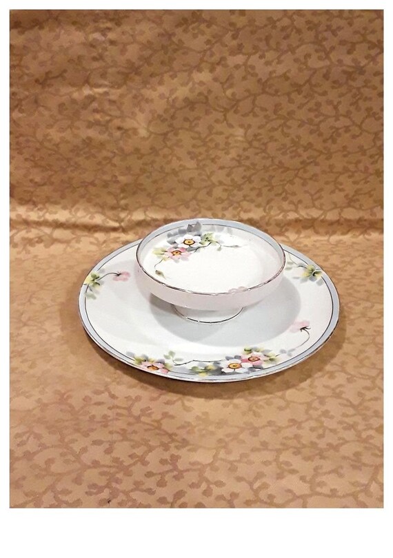Antique Nippon 2 Tier Cheese Cracker Tray Hand Painted Etsy