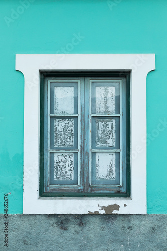 A Window Of A Bright Aquamarine Turquoise Color House With An Old Wooden Frame And A White Paint Around It Buy This Stock Photo And Explore Similar Images At Adobe Stock