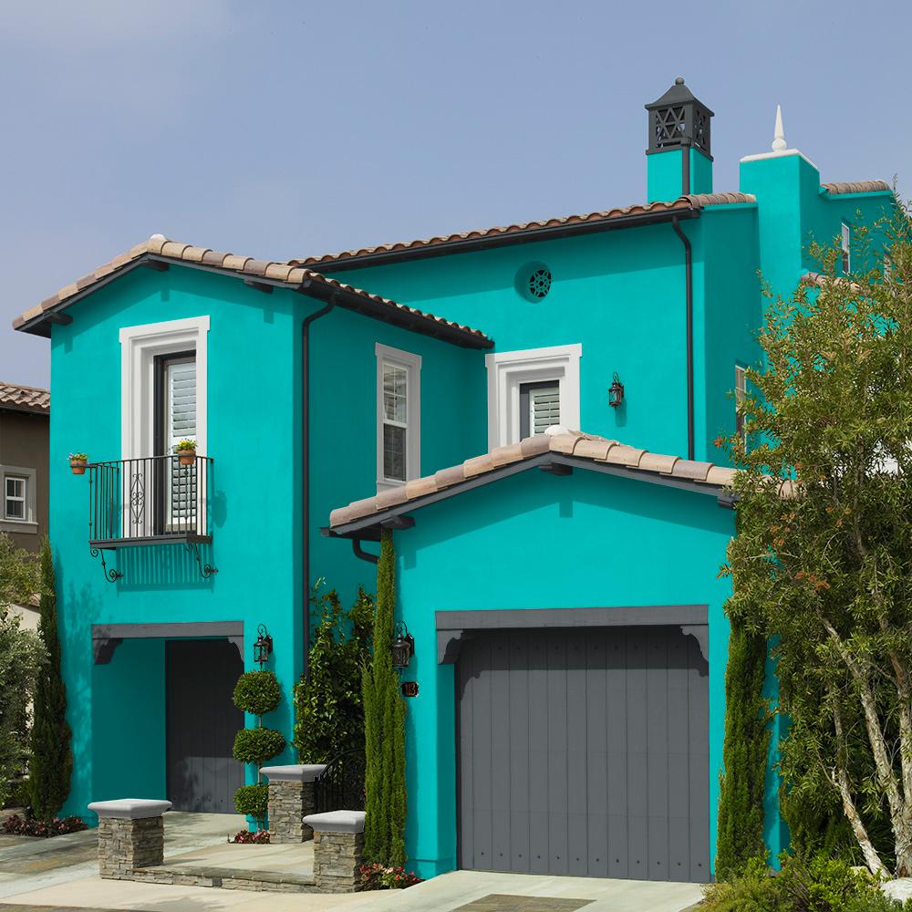 Behr Marquee 5 Gal Mq4 21 Caicos Turquoise Satin Enamel Exterior Paint Primer The Home Depot
