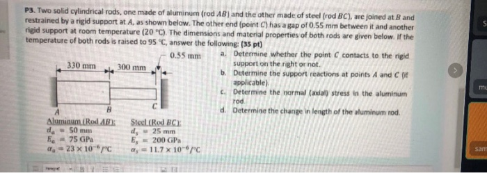 Solved P3 Two Solid Cylindrical Rods One Made Of Aluminu Chegg Com