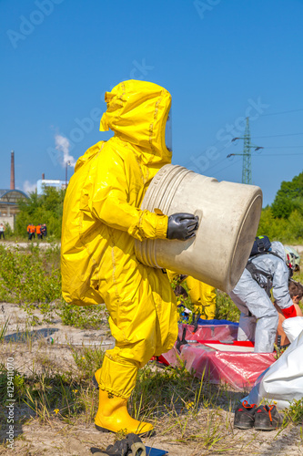 Man With Yellow Protective Suit To Manage Hazardous Materials Stock Photo Picture And Royalty Free Image Image
