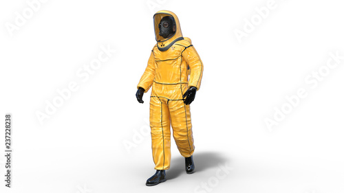 Man Wearing Yellow Protective Hazmat Suit Human With Gas Mask Dressed In Biohazard Outfit For Chemical And Toxic Protection 3d Rendering Buy This Stock Illustration And Explore Similar Illustrations At Adobe