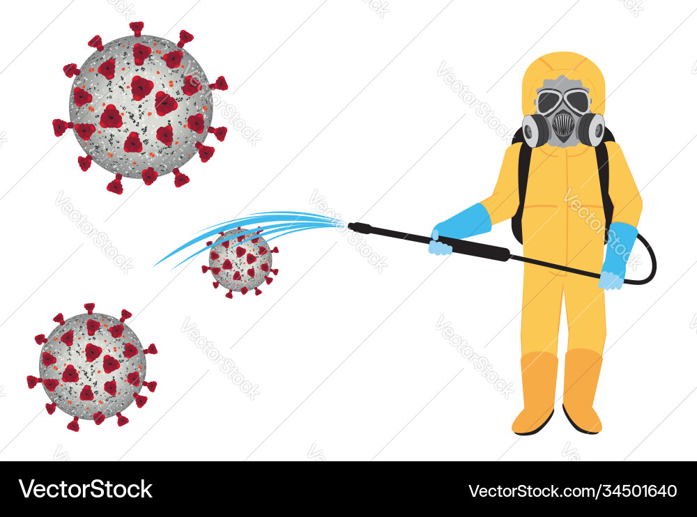 Man In Yellow Protective Suit Spraying Royalty Free Vector