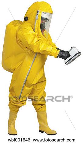 Mature Man In Yellow Protective Suit With Holding Meter For Radioactivity Stock Photograph Wbf Fotosearch