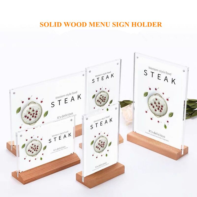 Acrylic Table Tent Frame Tabletop Photo Frame Menu Holder With Wood Base A6 A5 Aliexpress