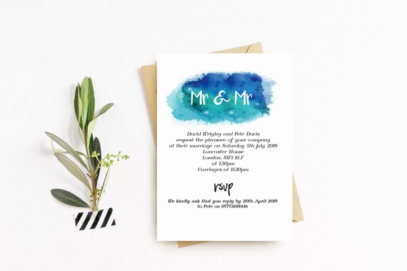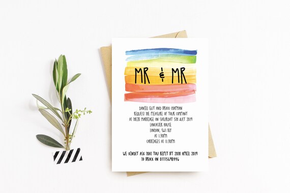 Gay Wedding Invitation Personalized Printable Same Sex Mr Etsy