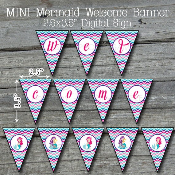 Mermaid Party Welcome Sign Mermaid Printable Banner Digital Download Printable Party Ideas Bunting Mini Small Tiny Decorations By Swish Printables Catch My Party