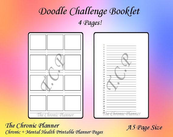 Doodle Challenge Booklet 4 Pages 36 Boxes With Title Line Etsy