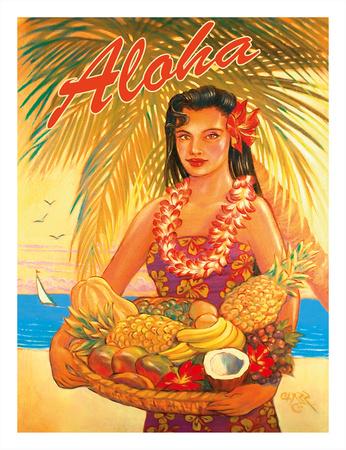Aloha Fruit Basket Hawaii Woman Wahine Tropical Fruit Basket Prints Rick Sharp Allposters Com