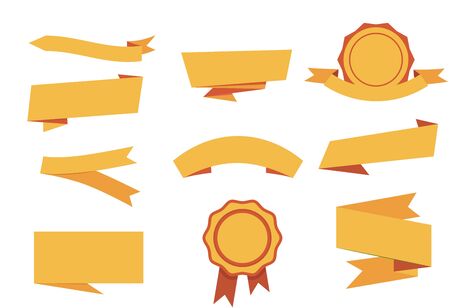 Ribbon Elements Set Starburst Label Vintage Yellow Color Modern Simple Ribbons Collection Vector Illustration