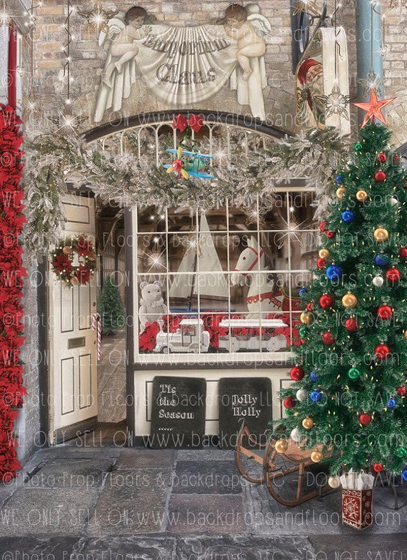 Christmas Storefront Photography Backdrop Santa S Etsy Photography Backdrop Photography Backdrops Backdrops