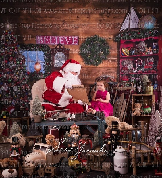 Christmas Toy Shop Photography Backdrop Santa S Etsy
