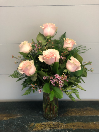 Half Dozen Light Pink Roses Vase Arrangement In Bluffton Sc Berkeley Flowers Gifts