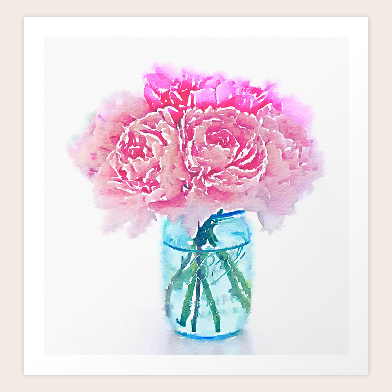 Watercolor Pink Peonies Flowers In Vase Print Art Print By Theprettyshopnyc Society6