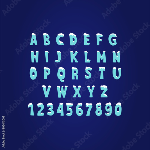 Winter Font Snow Alphabet For Merry Christmas And New Year Cartoon Typography Vector Ice Abc For Fun Family Education Frozen Text With Cold Holiday Numbers Vector Flat Style Festive Icy Letters