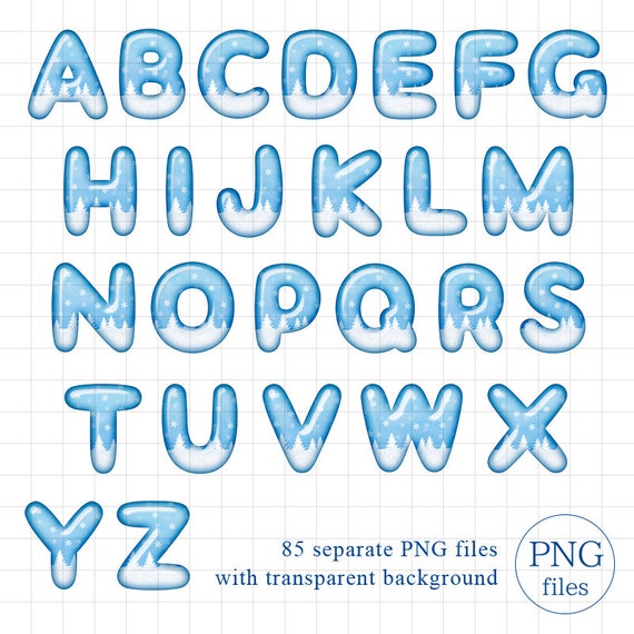 Blue Snow Scene Font Snowflakes Alphabet Snowy Christmas Etsy