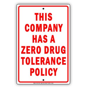 This Company Has A Zero Drug Tolerance Policy Aluminum Metal Sign 8 X 12 Ebay