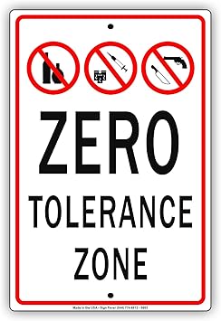 Amazon Com Zero Tolerance Zone Aluminum Metal Sign With Symbol Home Decor Display Board Advertisement Sign Boards 8 X12 Office Products