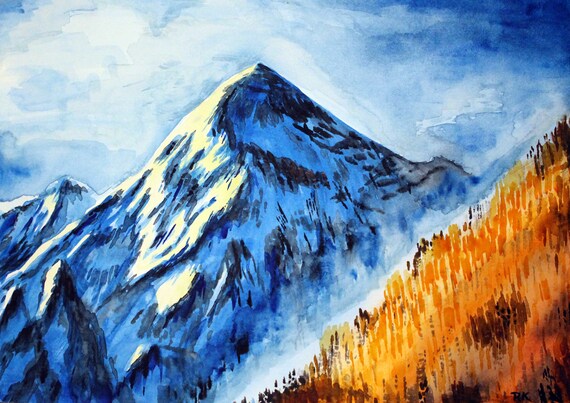 Snowy Mountains Original Watercolor Painting Artwork Etsy