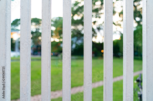 Vertical White Steel Fence Grille Front Of Garden Buy This Stock Photo And Explore Similar Images At Adobe Stock Adobe Stock