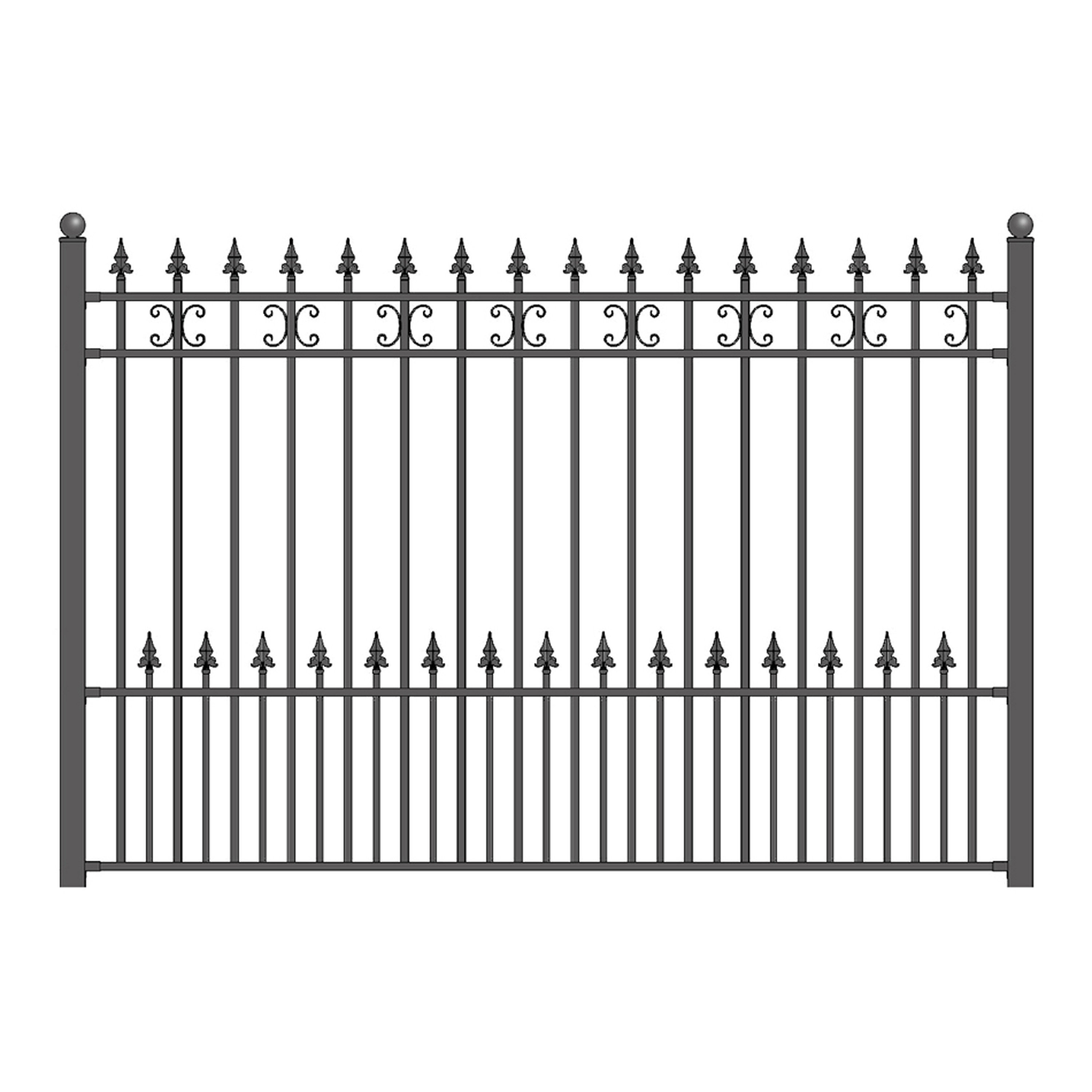 Aleko Diy Iron Wrought Steel Fence Diy Iron Wrought Steel Fence 7 1 Ft H X 5 5 Ft W Black Steel Yard Fence Panel In The Metal Fence Panels Department At Lowes Com
