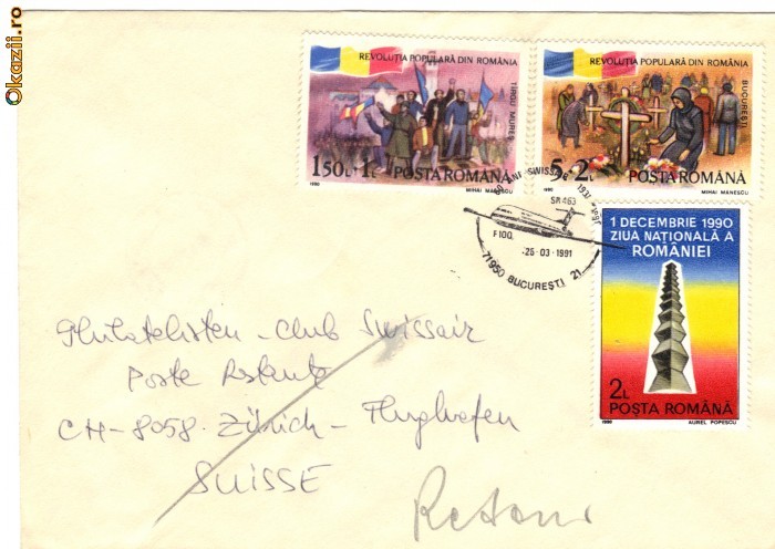 Plic Aerofilatelie 80 Ani Swissair Zbor Special Bucuresti Zurich Okazii Ro