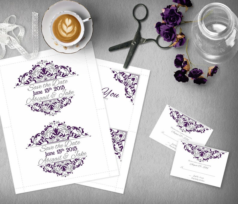 Silver Purple Wedding Invitation Template Invitation Suite Etsy