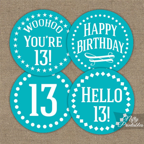 Turquoise 13th Birthday Cupcake Toppers Aqua White 13th Etsy