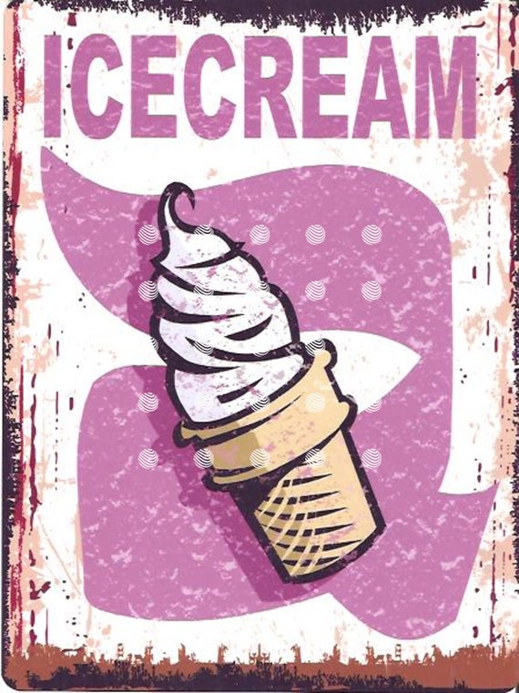 Ice Cream Metal Wall Sign Retro Vintage Style Pubgames Etsy