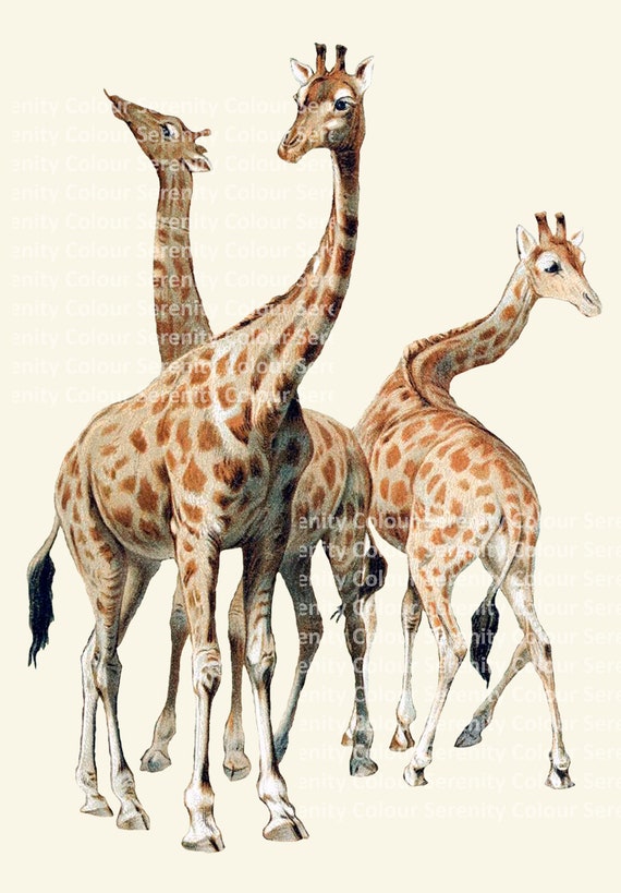 Vintage Giraffe Illustration Printable Giraffes 1800s Antique Etsy