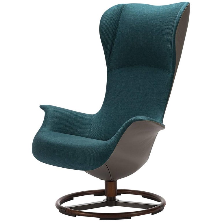 Teal Fabric And Taupe Italian Leather Tilt Swivel Ergonomic Wing Chair Giorgetti At 1stdibs