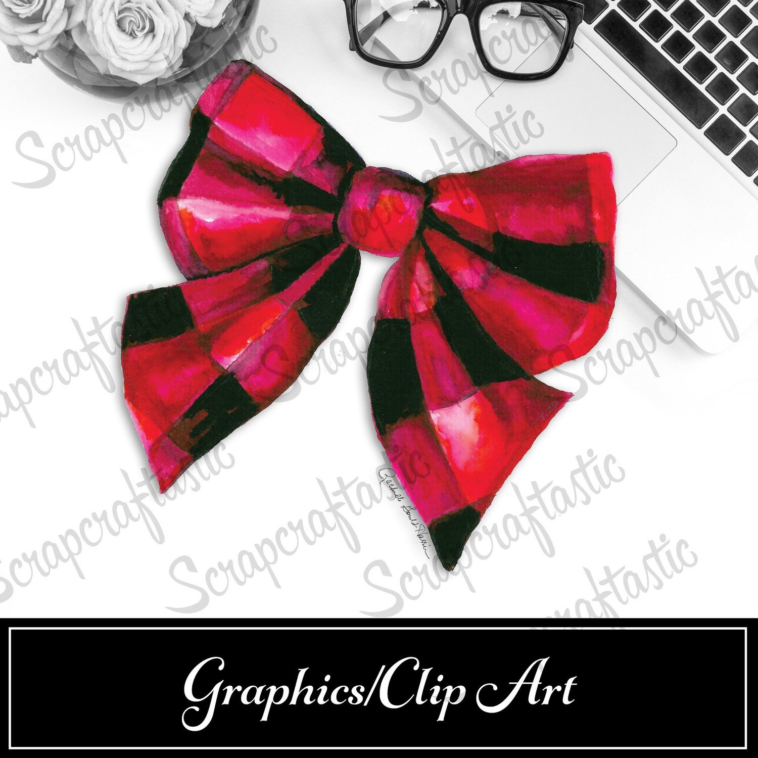 Watercolor Buffalo Plaid Bow Graphic Original Artwork