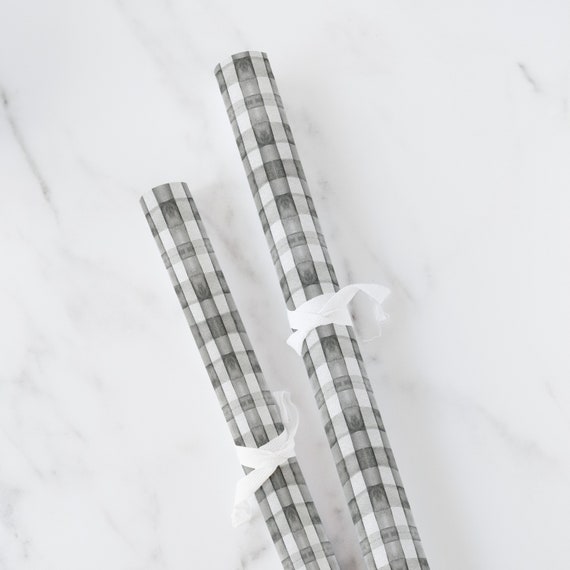 Black White Buffalo Plaid Check Watercolor Gift Wrapping Etsy